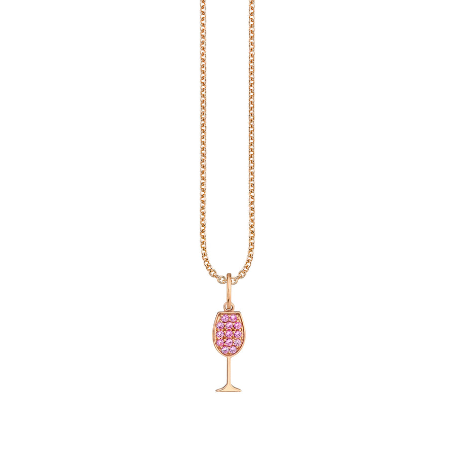 Rose Gold & Pink Sapphire Tiny Wine Glass Charm