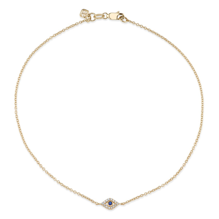 Gold Bezel Sapphire & Diamond Small Eye Anklet