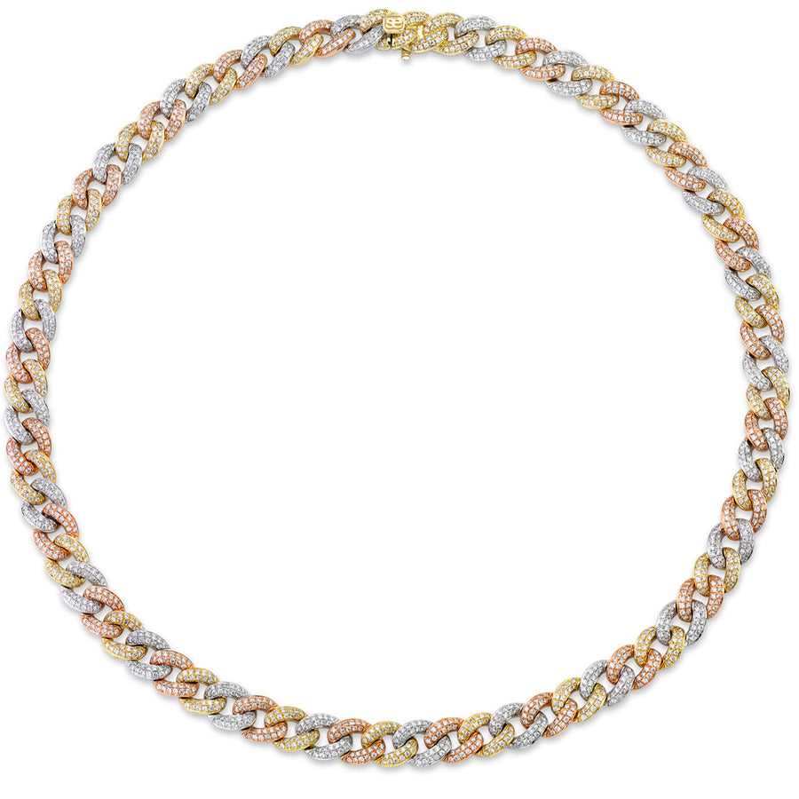 Tri-Tone Gold & Pave Diamond Small Link Necklace
