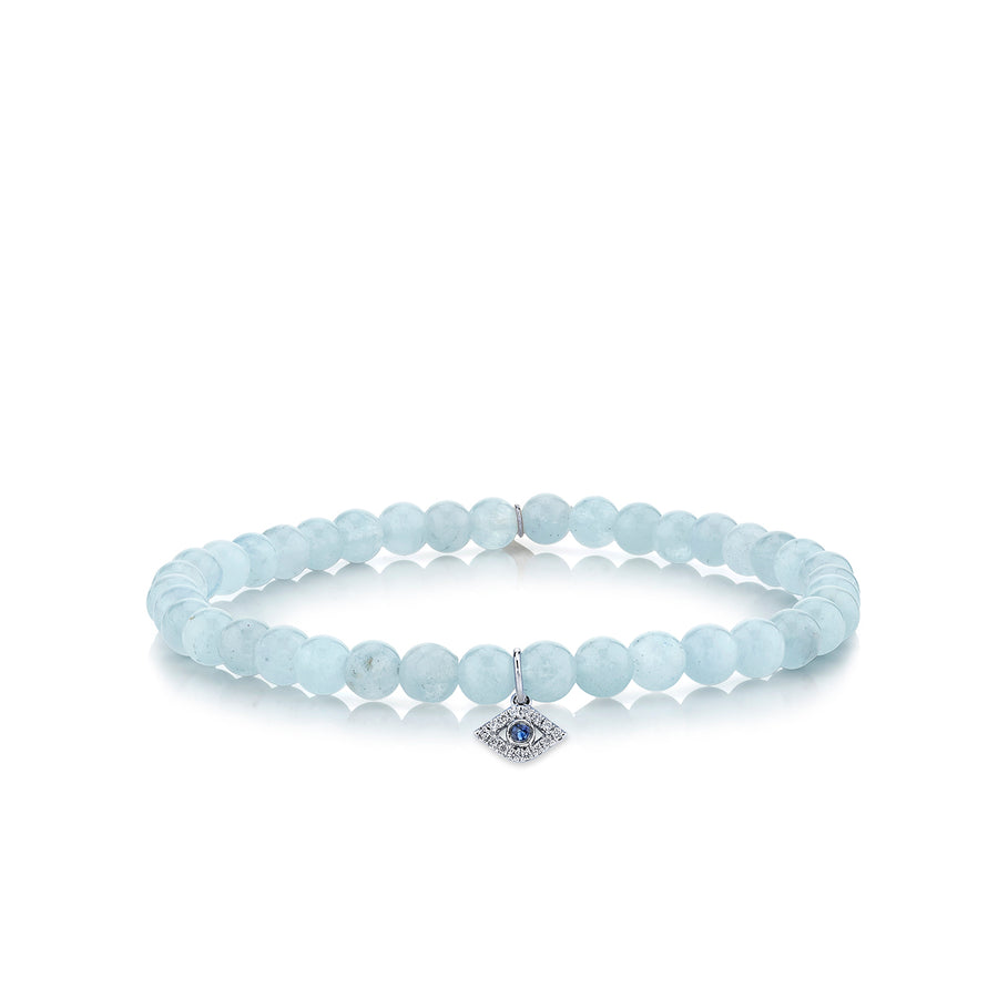 White Gold & Bezel Diamond Eye with Sapphire on Aquamarine