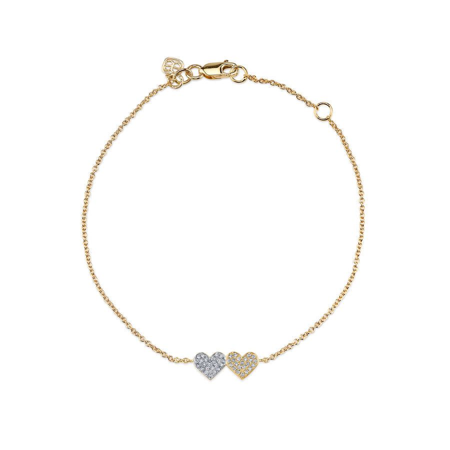This elegant 14k yellow gold bracelet features a pair of pave diamond hearts, symbolizing love and unity. The intertwined hearts represent a bond that is both eternal and unbreakable, making it the perfect gift to celebrate a special connection. Crafted in 14k gold, the bracelet exudes a timeless quality, while the pave diamonds add a sparkling touch of luxury and refinement. The 6 3/4" bracelet length, with an adjustable loop at 6 1/4", ensures a perfect fit, allowing the bracelet to sit gracefully on the wrist. Whether for an anniversary, birthday, or just because, this piece serves as a reminder of love's enduring power.