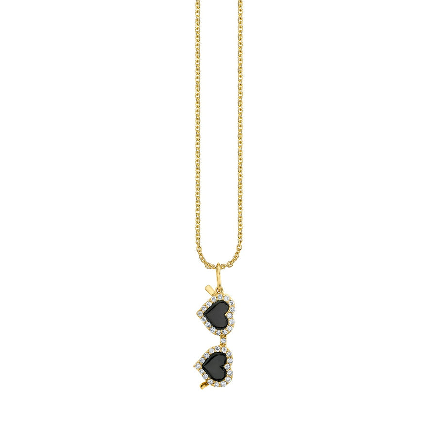 This stunning 14k yellow gold and diamond heart sunglasses charm necklace blends playful elegance with meaningful symbolism. The heart shape represents love, passion, and connection, while the sunglasses add a fun, carefree element, symbolizing a confident, free-spirited attitude. The fine diamonds bring a touch of luxury and sparkle, representing purity, clarity, and the enduring nature of love.