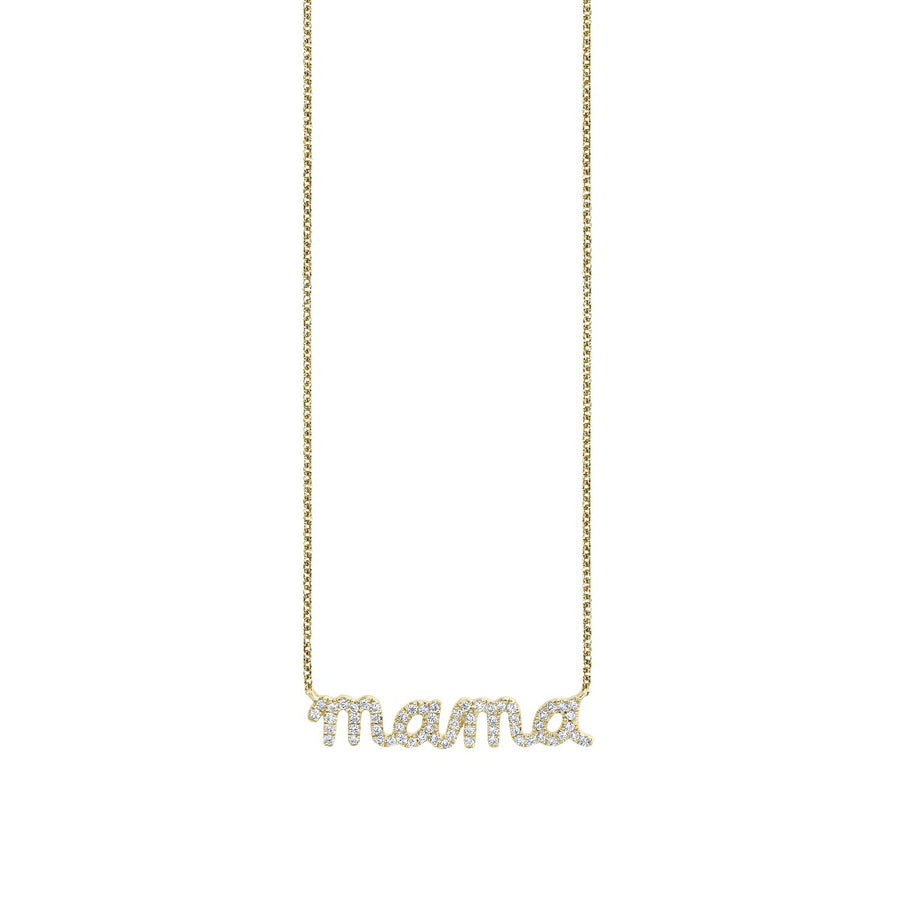 Celebrate the strength, love, and beauty of motherhood with this small 14k yellow gold and pavé diamond MAMA necklace. Spelled out in our signature Sydney Evan hand-drawn script, the design brings a personal, heartfelt touch to a timeless word. The diamond-encrusted script measures approximately 1" x 3/16", offering a subtle yet sparkling tribute to moms everywhere.