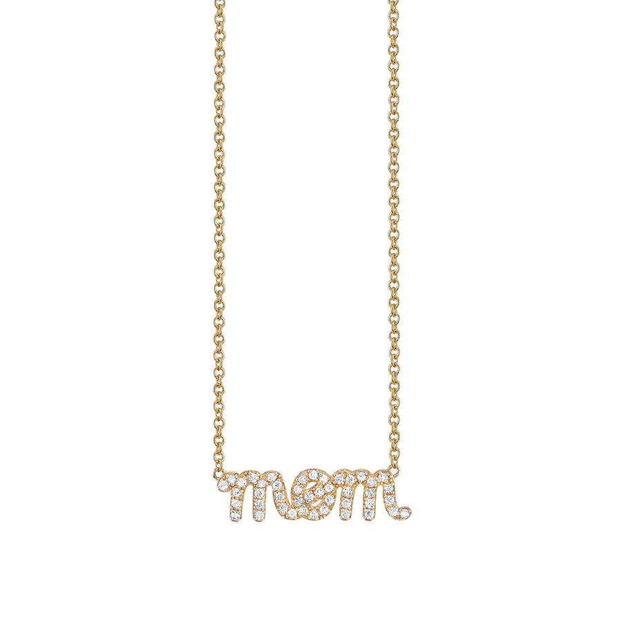 Celebrate the timeless bond of motherhood with our elegant 14k Yellow Gold “Mom” Necklace, exquisitely spelled out in our signature Sydney Evan (SE) script. Adorned with sparkling pavé-set diamonds, this delicate piece measures approximately ⅕" x ¾", blending refined craftsmanship with heartfelt sentiment.