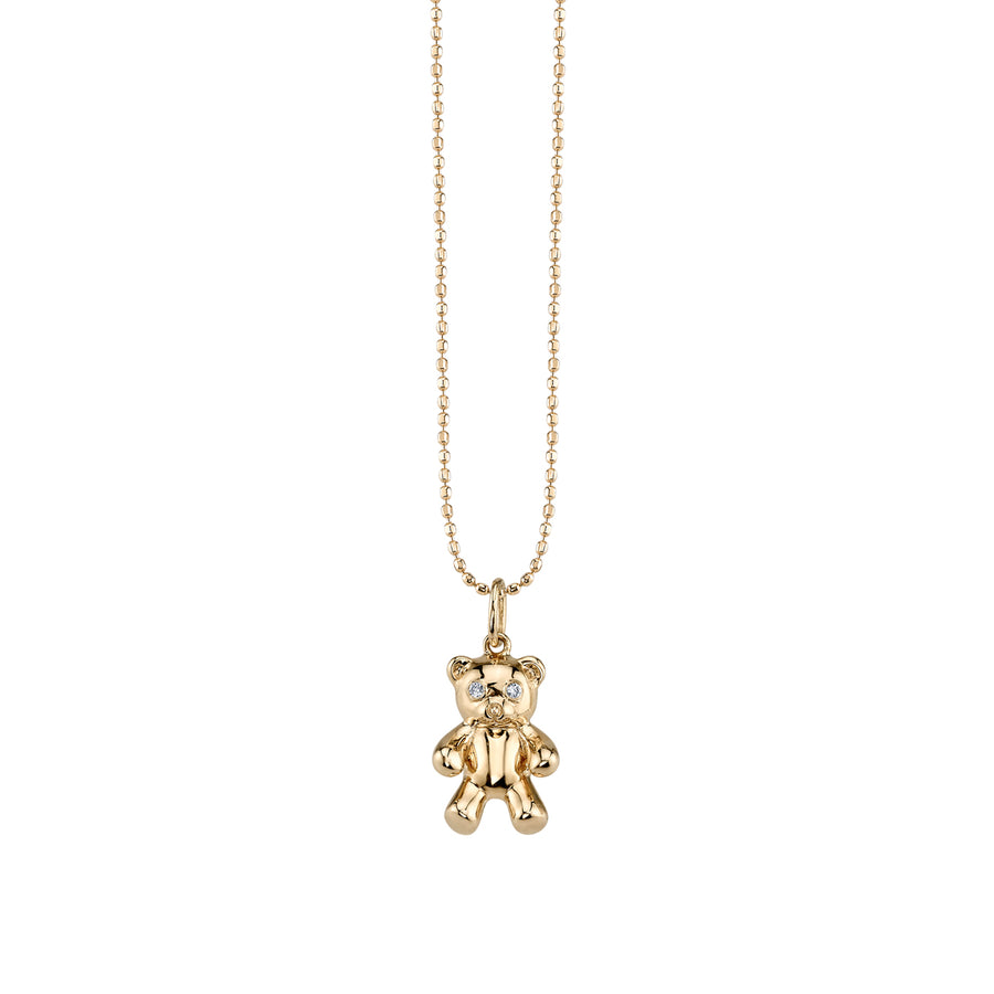 Celebrate whimsy and warmth with our 14k Yellow Gold Teddy Bear Charm Necklace, part of the beloved Little Loves Collection. This adorable teddy bear charm, measuring approximately ¼" x ½", features sparkling diamond eyes that add a subtle touch of sparkle and personality.