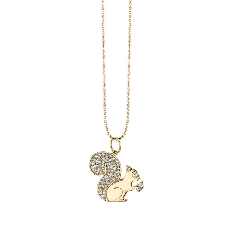 Celebrate whimsy and curiosity with this 14k yellow gold squirrel charm, beautifully adorned with pavé-set diamonds that add a subtle sparkle. Measuring approximately 5/8" x 5/8", this charming piece captures the playful spirit and resourcefulness symbolized by the squirrel. Suspended from a fine 14k gold ball chain available in 16" or 18" lengths, this necklace is a delightful accessory that brings both personality and elegance to your everyday look.